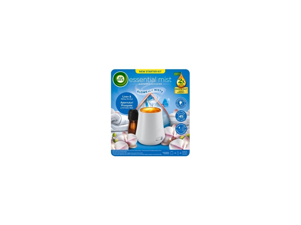 Air Wick Essential Mist Linen & White Orchid - Len és Fehér Orchidea aroma diffúzor szett 20 ml