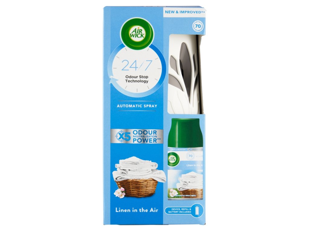 Használati utasítás: 1) Nyissa ki a diffúzort a hátulján található gomb megnyomásával, és hajtsa le az elejét. Ne takarja el a diffúzor elejét azzal, hogy megfogja. 2) Ellenőrizze, hogy a diffúzor hátulján található vezérlőgomb „Ki” állásban van-e, és helyezzen be 2 db 1,5 V-os elemet. Ügyeljen az elemek polaritására. 3) Mielőtt behelyezné az aeroszolos patront a diffúzorba, győződjön meg arról, hogy a diffúzor belsejében található piros kar felfelé van mozdítva. Ha nem, nyomja meg a kart egy ceruzával vagy tollal. Ezután helyezze be az aeroszolos patront a diffúzorba, a fúvókának kifelé kell mutatnia. 4) Zárja be a diffúzort. Fordítsa el a diffúzort az arcától. Állítsa az illat intenzitását alacsony/közepes/magas értékre. Aktiválás után az illat 15 másodpercen belül szabadul fel. Ha az illat 15 másodperc elteltével nem szabadul fel, kapcsolja ki a diffúzort, és ellenőrizze, hogy a 2. és 3. lépést helyesen végezte-e el, mielőtt végrehajtaná a 4. lépést. Ha a piros lámpa az illat első kibocsátása után gyorsan villogni kezd, a patront a rendszer nem azonosította Air Wick patronként, és nem fog működni ebben a gépben. Tanácsért hívja a + 420 227 110 111 telefonszámot. 5) Tartsa a diffúzort az arcától távol, és helyezze a kiválasztott helyre. Legalább 2 méterrel a padló felett. 6) Amikor az aeroszolos patron majdnem üres, a piros lámpa gyorsan villogni kezd, és a patront hamarosan ki kell cserélni. Fordítsa el a diffúzort az arcától, és fordítsa a készülék hátulján található gombot "OFF" állásba. Cserélje ki az aeroszolos patront egy új Air Wick patronra az utasításoknak megfelelően.