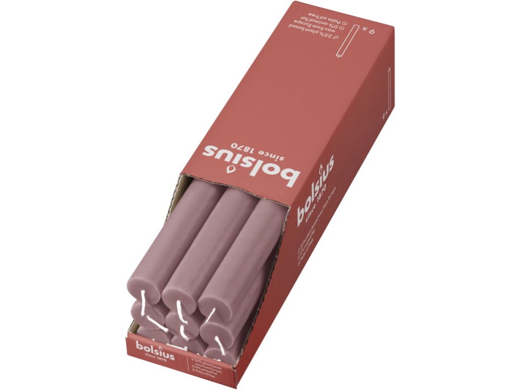 A vékony és magas, rusztikus Bolsius gyertya lágy rózsaszín hamvas rózsa árnyalatban alkalmas gyertyatartókba, dekorációként és ünnepi asztalokra. Diszkrét megjelenése nyugodt és romantikus hangulatot kölcsönöz bármilyen enteriőrnek.Kiegészítő paraméterek