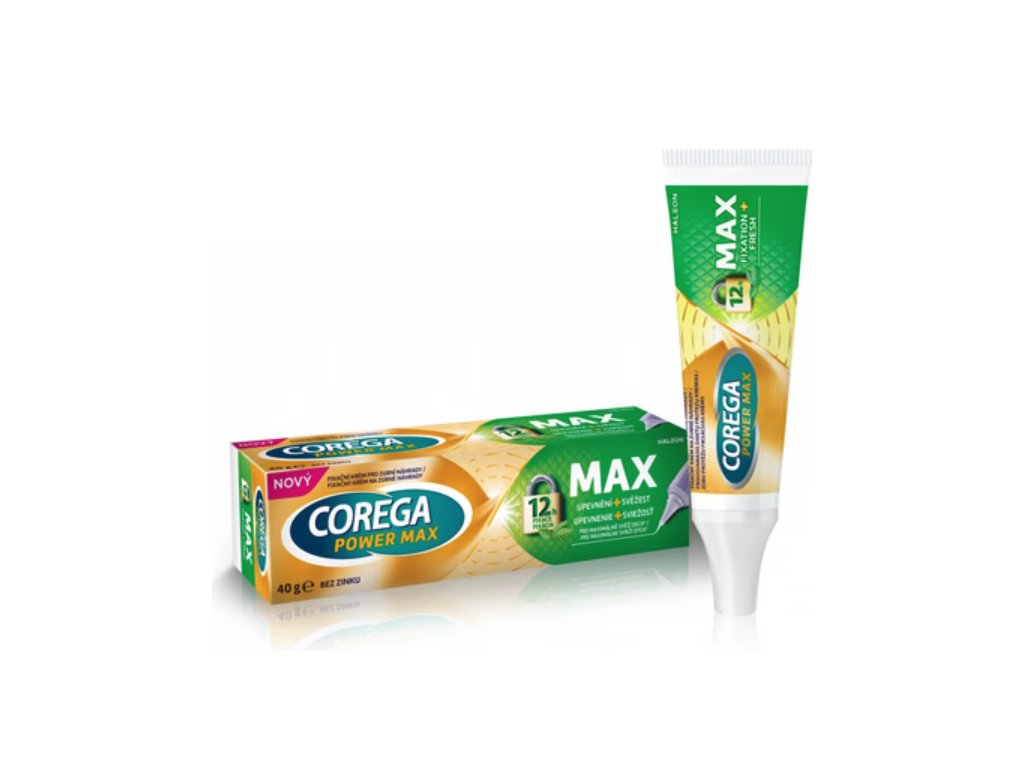 A Corega Power Max Fixation and Freshness egy fogsorrögzítő krém, amely egész napos erős tartást biztosít friss menta ízzel. A rögzítő krém akár 12 órán át tartó erős tartást biztosít. Ráadásul a menta íznek köszönhetően friss leheletet biztosít. A precíziós fúvóka lehetővé teszi a rögzítő krém felvitelét a fogsor szélére, segítve a tökéletesebb zárást.