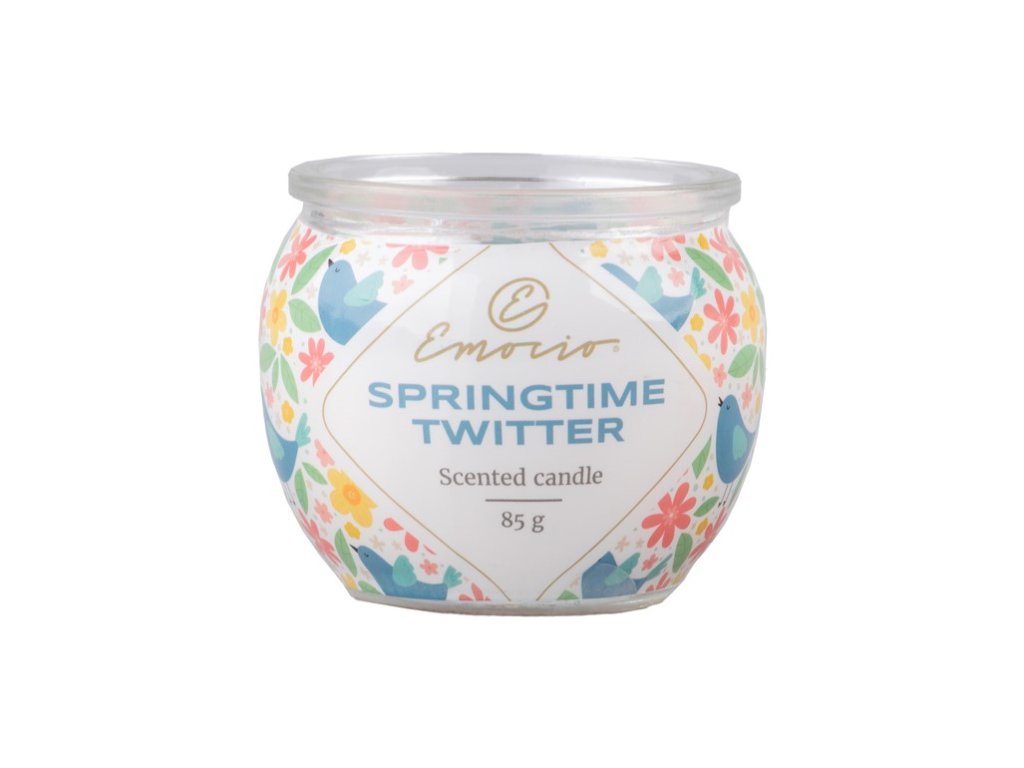 Az Emocio illatgyertya üvegben, Springtime Twitter, Blossoms & Spring Rain Dekor, a tavasz frissítő illatát hozza otthonába. Ez a friss virágillat vidám hangulatot teremt. Méretei 70x62 mm.Kiegészítő paraméterek