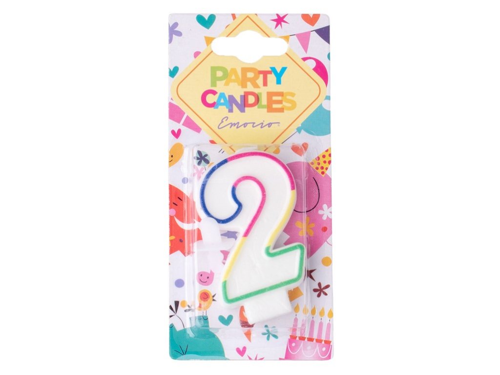 Az Emocio tortás gyertya fehér viaszból készült, színes szegéllyel, a 2-es szám alakjában. Ez a gyertya születésnapok, évfordulók vagy más események megünneplésére használható. A gyertya fehér műanyag betéttel rendelkezik, amely megkönnyíti a tortára helyezését. A gyertyát nem szabad huzatba helyezni.Kiegészítő paraméterek