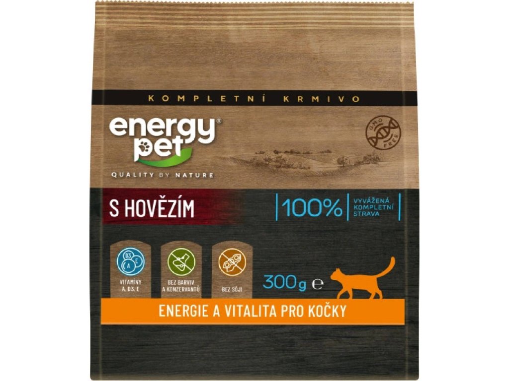 Az Energy Pet marhahússal még a legválogatósabb macskák tetszését is elnyeri. Teljes értékű eledel minden fajta felnőtt macskája számára. Nem tartalmaz színezéket vagy tartósítószert.