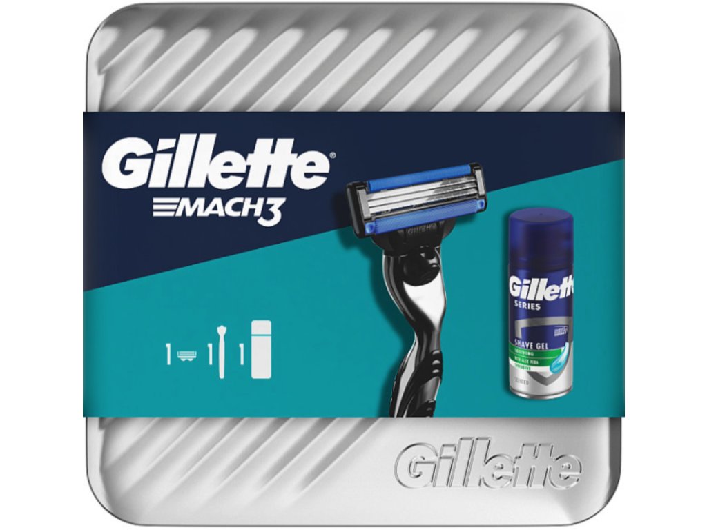 Gillette Mach3 (borotva+1 fej/bliszter)+Mach3 utazó gél 75ml szett retró fémdobozban