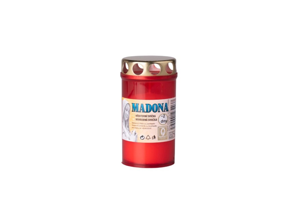 Madonna gyertya piros fedéllel, akár 2 napig ég.Kiegészítő paraméterek