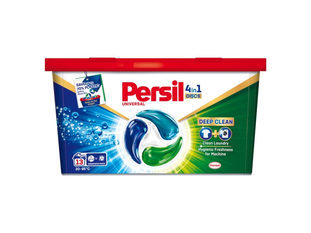 A Persil univerzális 4 az 1-ben Discs Deep Clean mosókapszulák nemcsak a ruhák, hanem a mosógép tisztaságának elérésében is segítenek. A kapszulákat mostantól Deep Clean technológiával is továbbfejlesztették, amely a ruhák mélytisztítását és a higiénikusan friss mosógépet biztosítja, hatékonyan eltávolítva a kellemetlen szagokat. Az egyedülálló formula mélyen behatol a ruhaszálakba, hogy eltávolítsa még a legmakacsabb foltokat is. A kapszulák alacsony hőmérsékleten (20 °C) is hatékonyak, ami lehetővé teszi az energiamegtakarítást. A Persil univerzális 4 az 1-ben Discs Deep Clean mosókapszulái a bolygóhoz is kíméletesek, a formula 92%-ban biológiailag lebomló összetevőket* tartalmaz, és 100%-ban újrahasznosítható csomagolásban készül.
