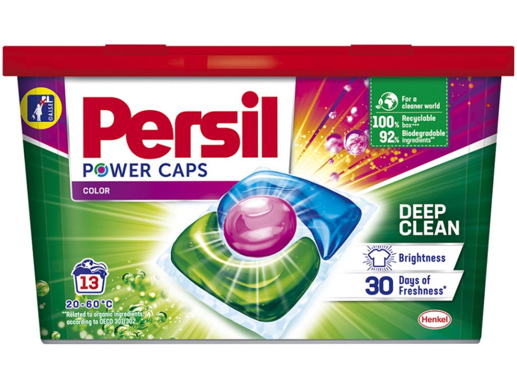 A Persil Power-Caps színes mosókapszulák hatékonyan eltávolítják a makacs foltokat, miközben megőrzik ruháid színeinek intenzitását. A kompakt kapszuláknak köszönhetően könnyen adagolhatók, felesleges pazarlás nélkül. Koncentrált formula a hatékony folteltávolításért és a színek intenzitásának megőrzéséért. 100%-ban vízben oldódó, nem hagy maradványokat. Színes ruhákhoz alkalmas.