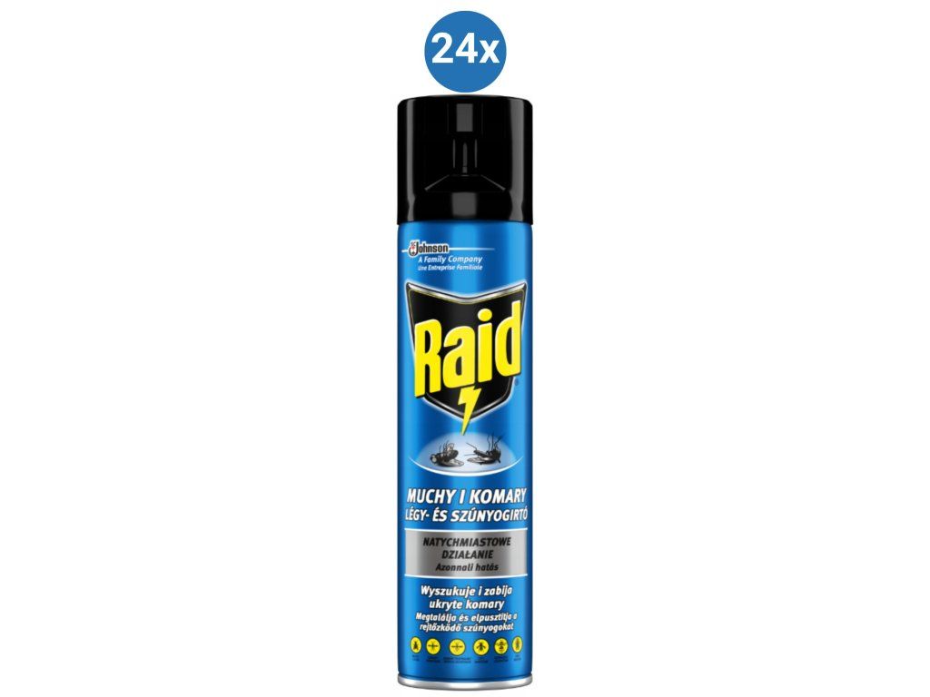 A repülő rovarok elleni Raid aeroszol egy hatékony rovarirtó spray, amelyet a szúnyogok, legyek, darazsak, lódarazsak, molyok és más kellemetlen rovarok gyors elpusztítására terveztek. Speciális összetételének köszönhetően a kijuttatás után azonnal hat, és beltéren és kültéren egyaránt használható.