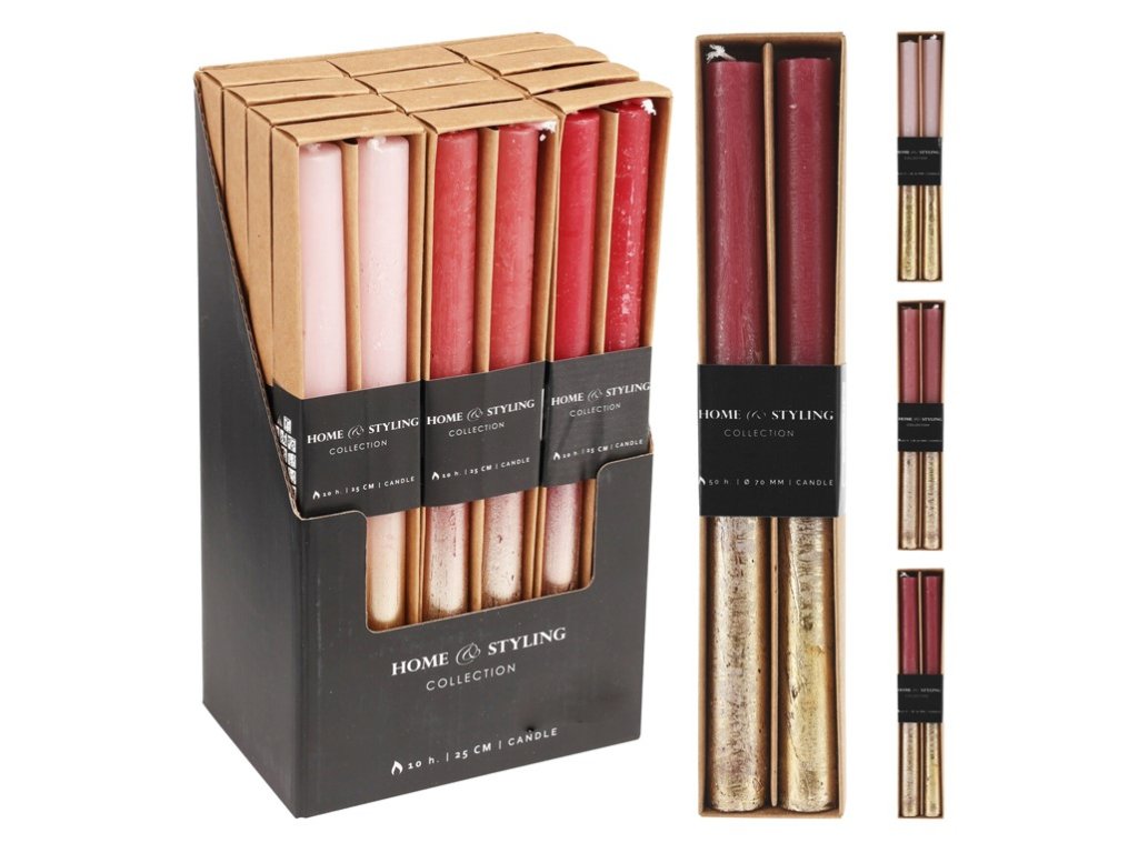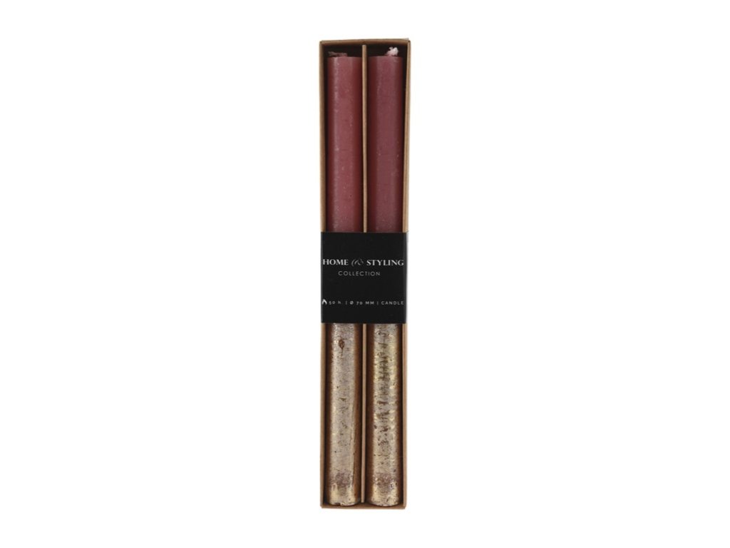 A két darabos rusztikus gyertyakészlet minden egyedi dekoráció szerelmesét elvarázsolja. Minden gyertya mérete 21x250 mm, és a közepétől elegáns fémes bevonattal díszítettek. Ideálisak gyertyatartókba, ünnepi asztalra, ünnepségekre vagy romantikus estékre. Dizájnjuk első látásra magára vonzza a tekintetet, és kellemes hangulatot teremt bármely helyiségben. Ízléses ajándéknak is alkalmas.Kiegészítő paraméterek