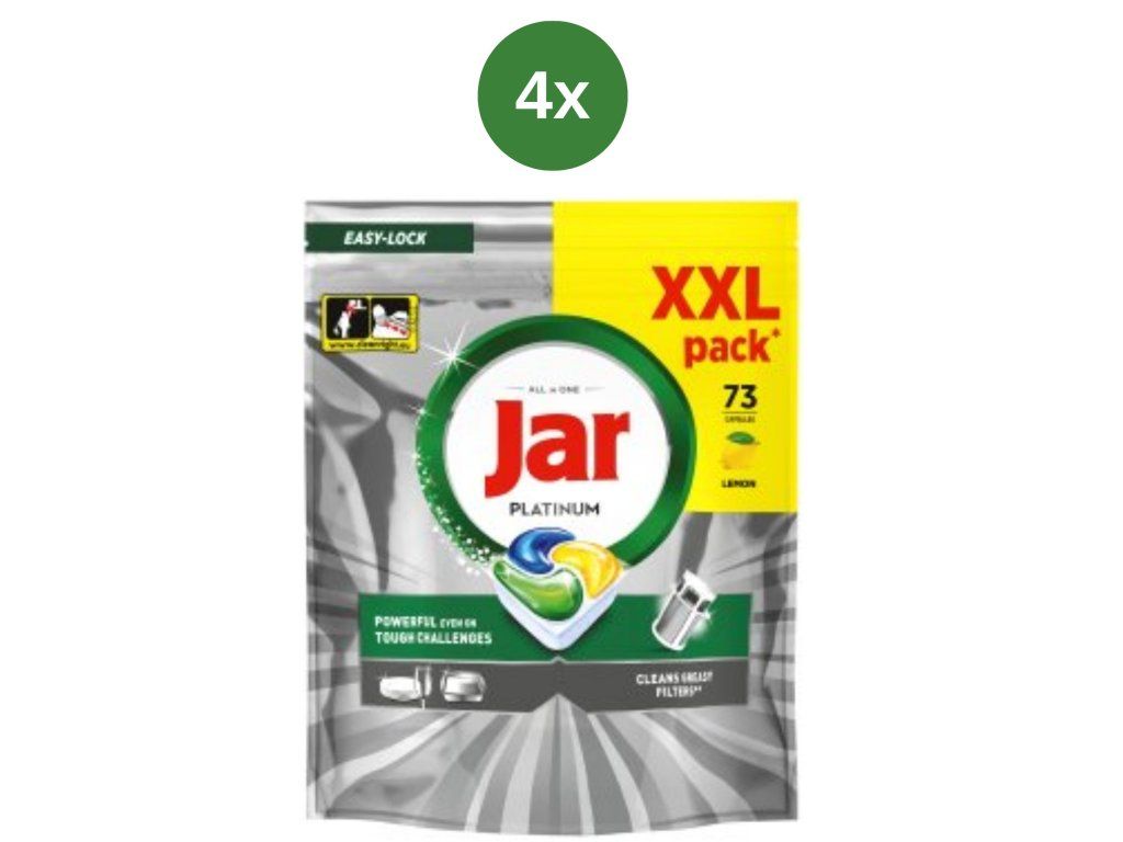 A Jar Platinum Lemon egy univerzális mosogatógép-kapszula, amely még az erősen szennyezett edényeken is kiváló tisztítóteljesítményt biztosít. Hatékonyan eltávolítja a zsírt, a rászáradt ételmaradékokat és az odaégett szennyeződéseket, így az edények tökéletesen tiszták és fényesek maradnak.