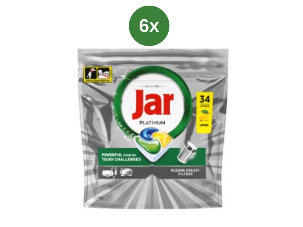 A Jar Platinum egy univerzális mosogatógép-kapszula, amely még erősen szennyezett edényeken is kiváló tisztítóteljesítményt biztosít. Folyékony és por állagú összetevőket ötvöz, amelyek hatékonyan eltávolítják a zsírt és a rászáradt ételmaradékokat, miközben ragyogó fényt biztosítanak az edényeknek.